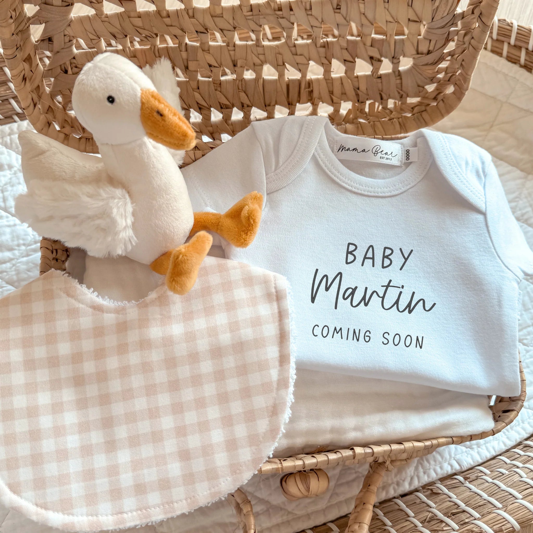 1. 'The Polar' Giftbox: ($130) includes the most beautiful animal print swaddle, matching bodysuit, handmade gingham giraffe taggie, matching dummy clip and wooden round rattle. Optional Extra: Add a 'Funny things my kids say' Journal (+$20).
