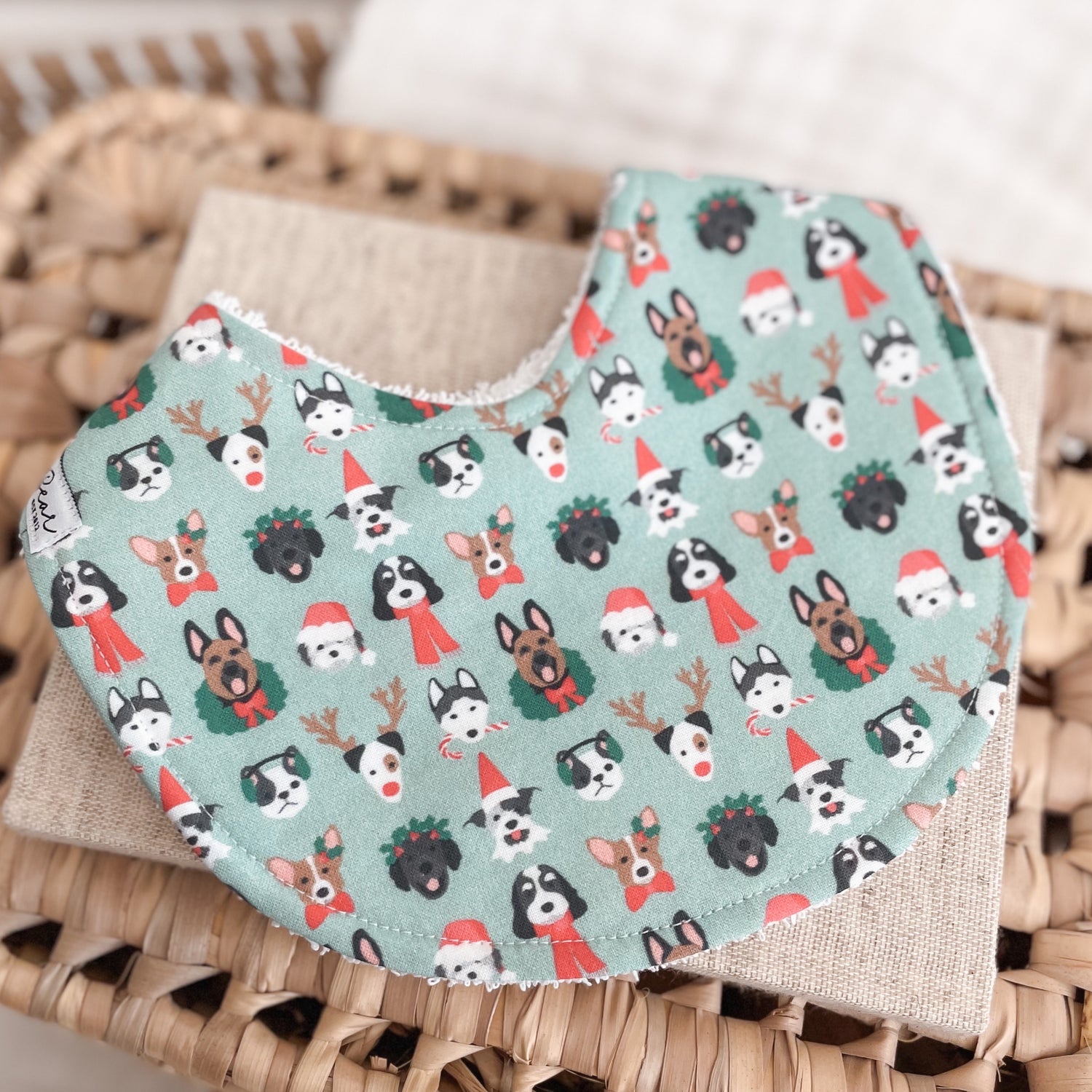 Bib - Christmas Puppies (Green Background)