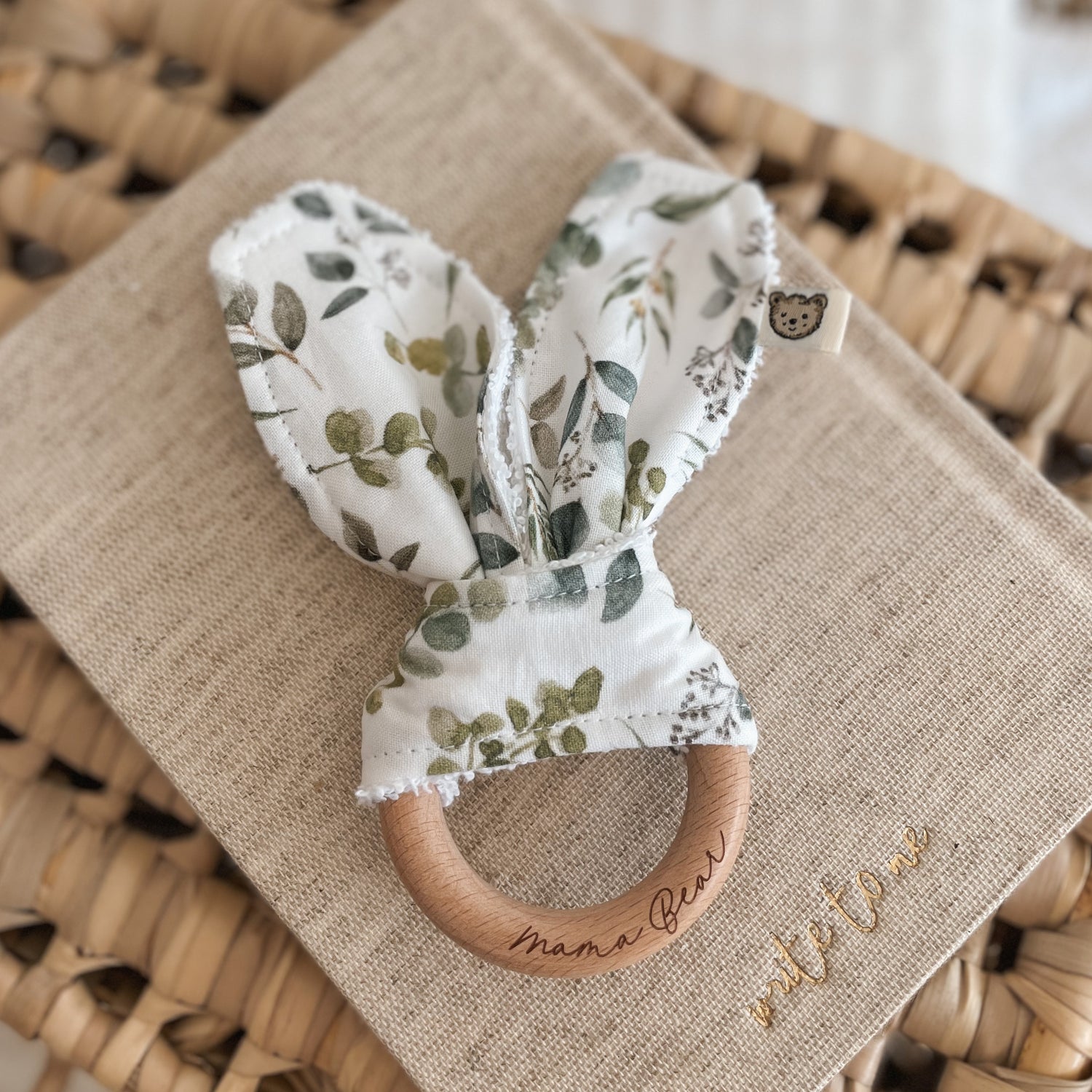 Natural wood & Bunny Ear Teething Ring - Eucalyptus