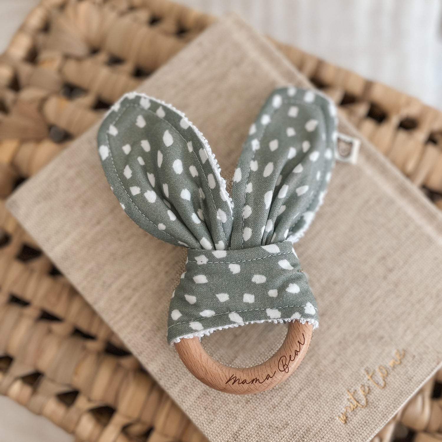 Natural wood & Bunny Ear Teething Ring - Sage Spot