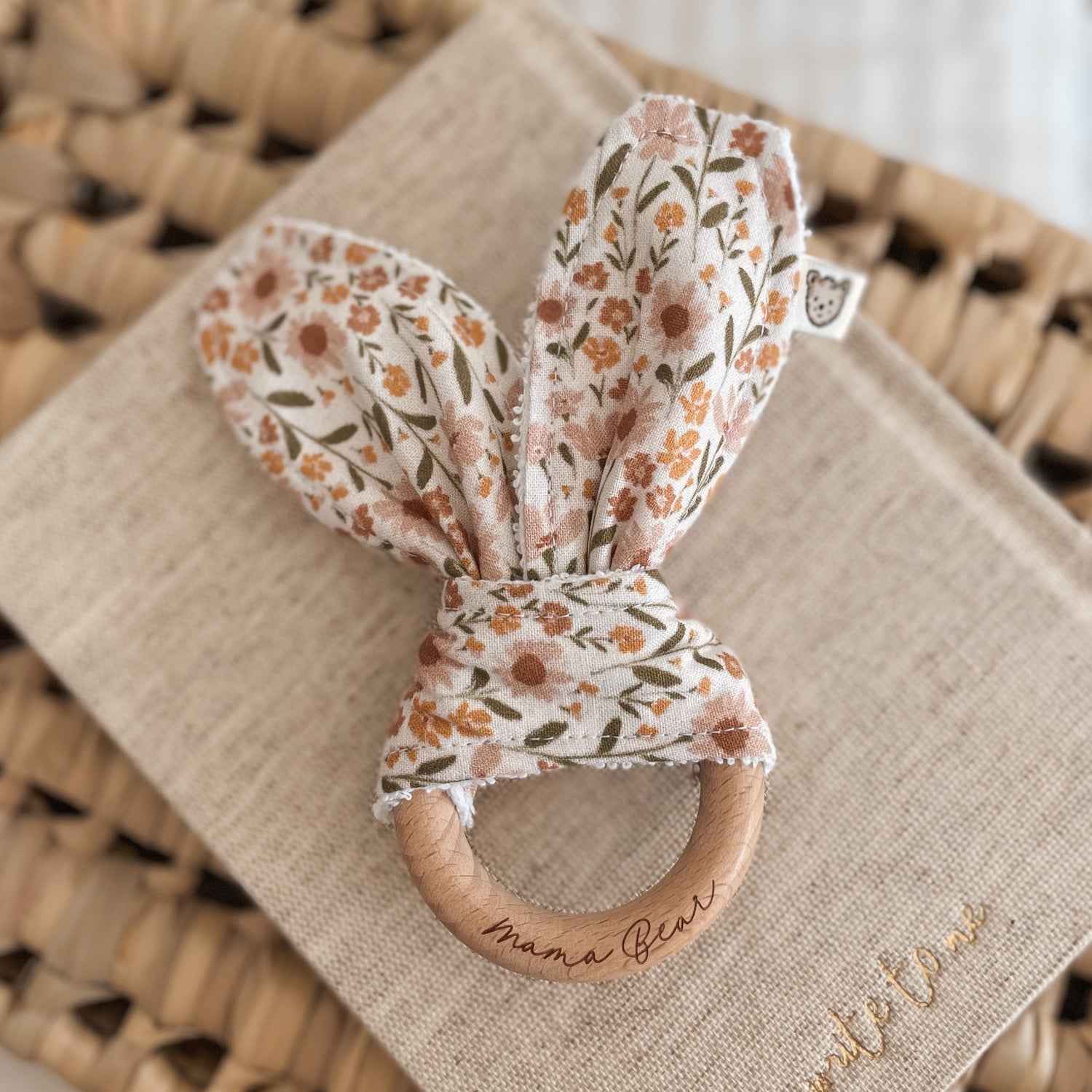 Natural wood & Bunny Ear Teething Ring - Mini Spring